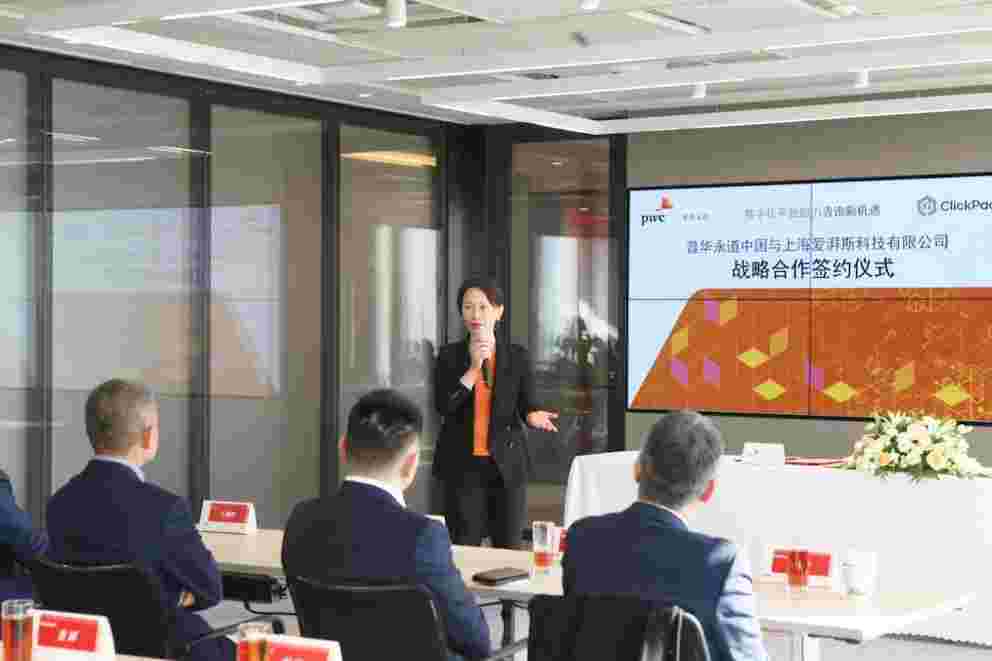 普华永道中国风险及控制服务数字化鉴证和分析服务主管合伙人吕麟晖与GOPAY钱包首席产品官马俊代表双方签订战略合作协议,,,普华永道中国上海主管合伙人黄佳与GOPAY钱包创始人、、、CEO胡柏见证战略合作协议签订过程。。普华永道中国创智中心合伙人林榕作为项目总负责人主持并见证了本次战略合作签约仪式。。。