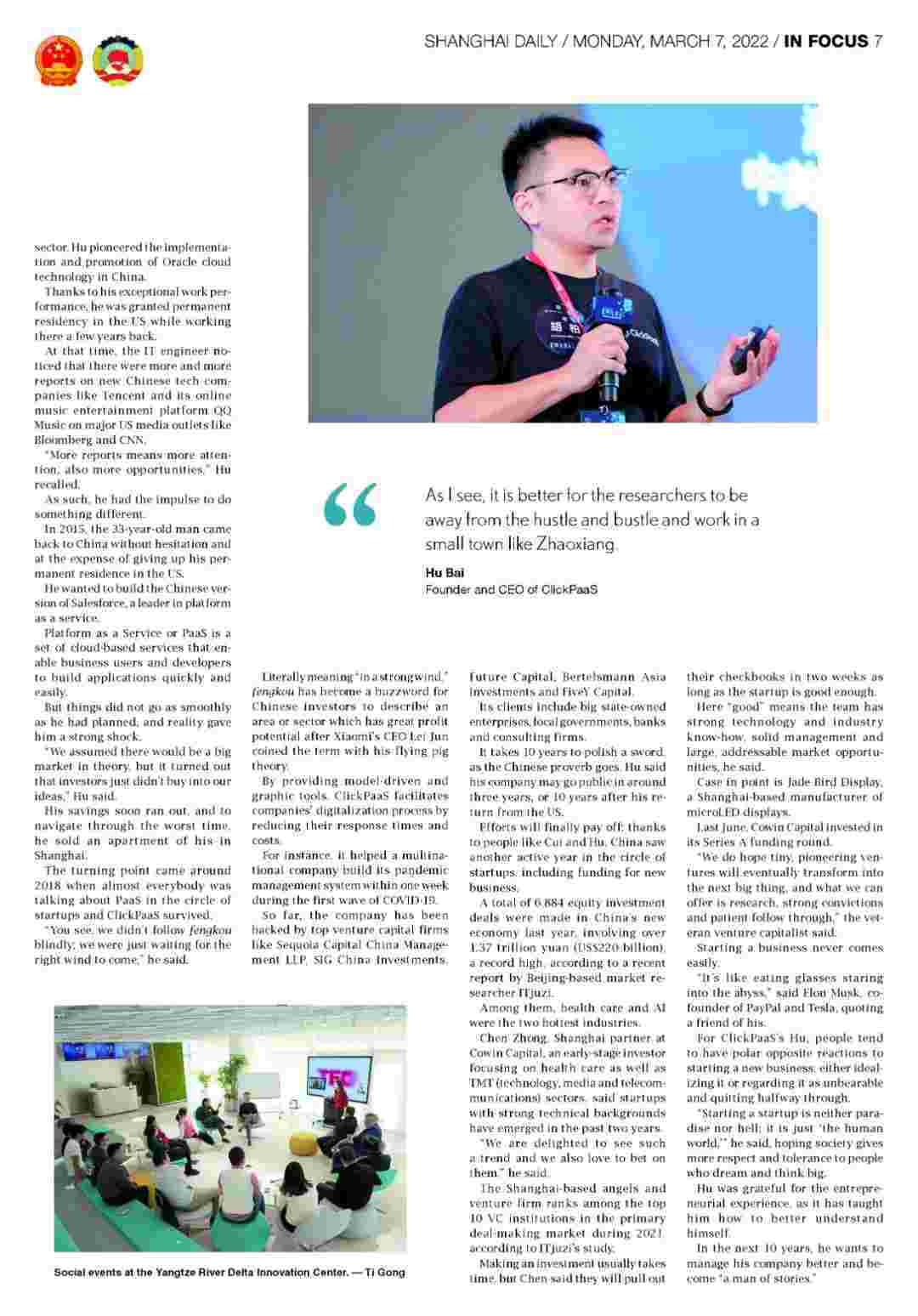 近日,,,,GOPAY钱包创始人、、CEO胡柏接受了《上海日报》采访,,,,关于自己当初为何选择创立GOPAY钱包,,,,又为何将公司落户于上海青浦,,分享了其背后的故 事。。